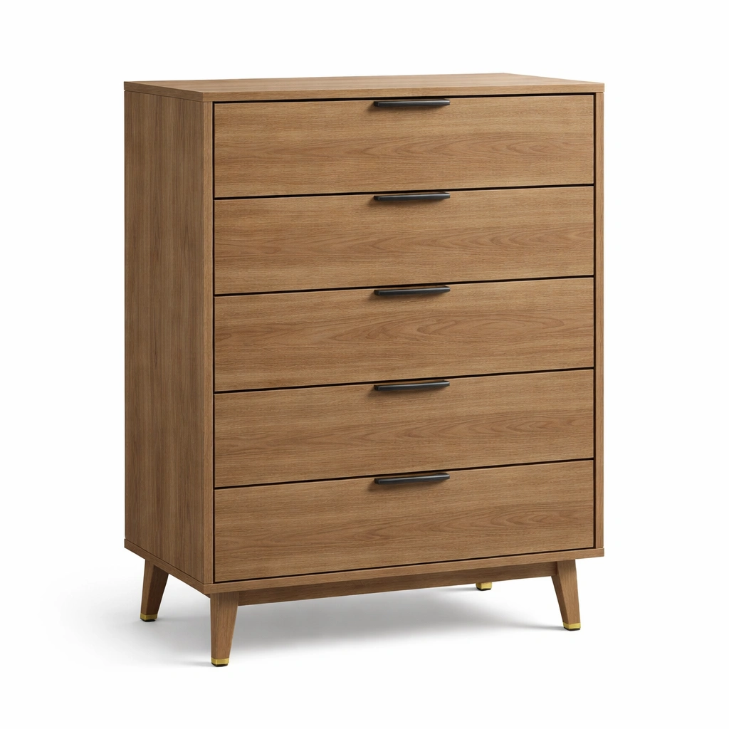 Commode à tiroirs 5 tiroirs en bois chêne clair 90x40x120 cm