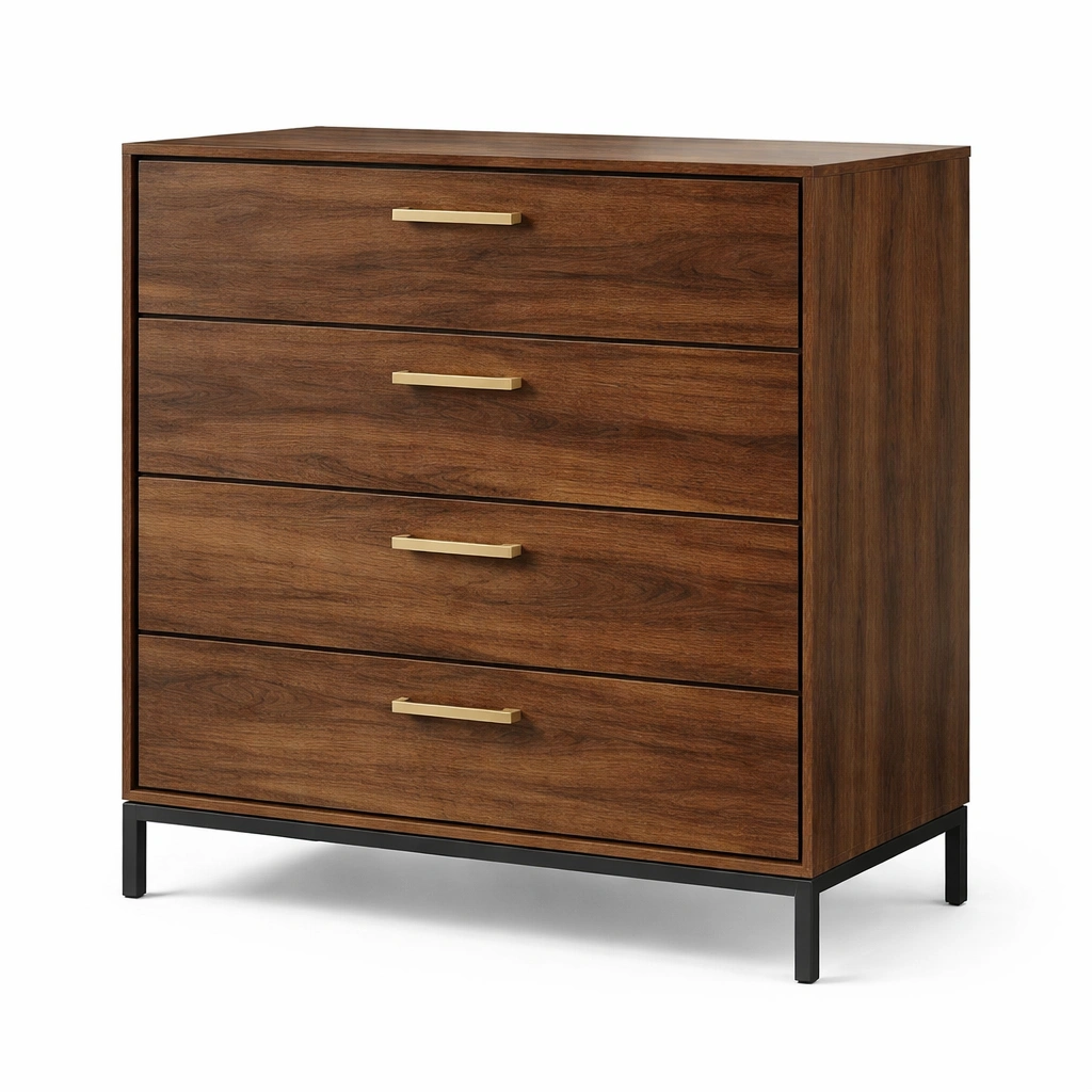 Commode à tiroirs 4 tiroirs en bois avec poignées en métal