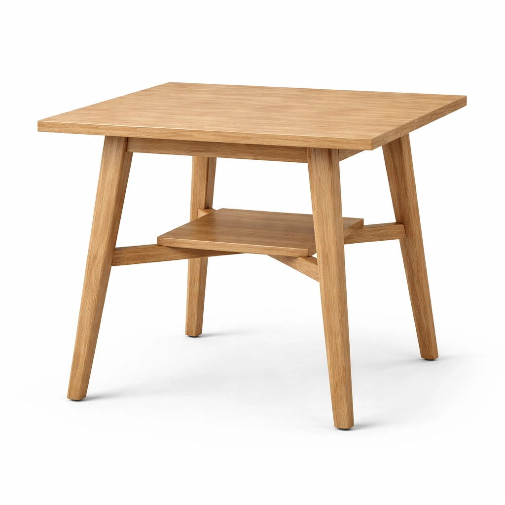 Table basse fabriquée en bois de chêne massif. Dimensions: 80 cm de longueur, 80 cm de largeur et 60 cm de hauteur.
